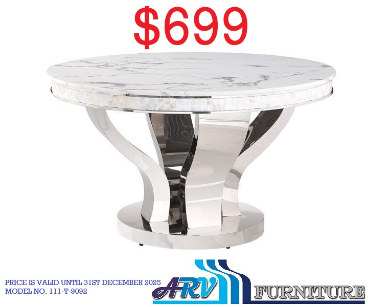 MODEL NO.111-T-9092 The price is for a Dining Table. Color:- White This round dining table is designed to be seamlessly blended with its beautiful mix of materials and two-tone design, which is exquisitely balanced. With its 20MM White Marble table top and chrome stainless steel base, the dining table is perfect for a classy look, while still being unique. The Celeste dining table is built to last, regardless of where you place it. It is versatile and can be used in different scenes, taking up minimal space Dimensions W-51.25″ x H-30″ x D-51.25″