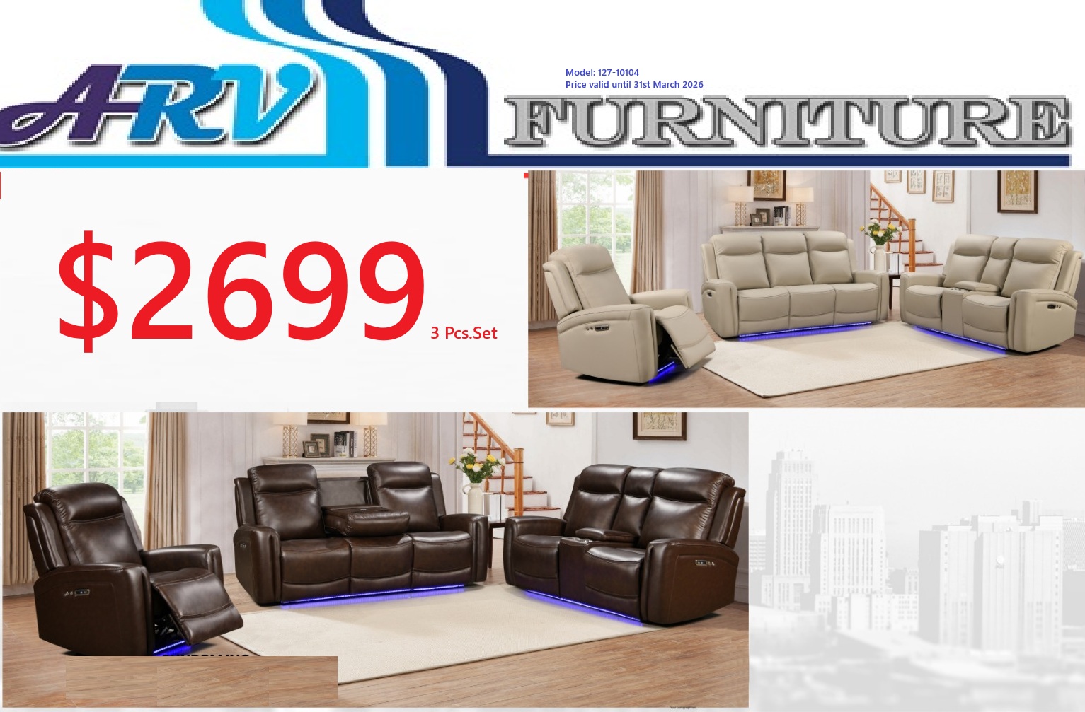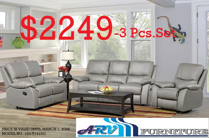 The price is for the Recliner Sofa, Recliner Love seat & Reclining Chair. Color:- Light Grey. Dimensions Recliner Sofa 80” W 37” D 40” H Recliner Love Seat 60” W 37” D 40” H Recliner Chair 37” W 37” D 40” H Material Genuine Leather/Match