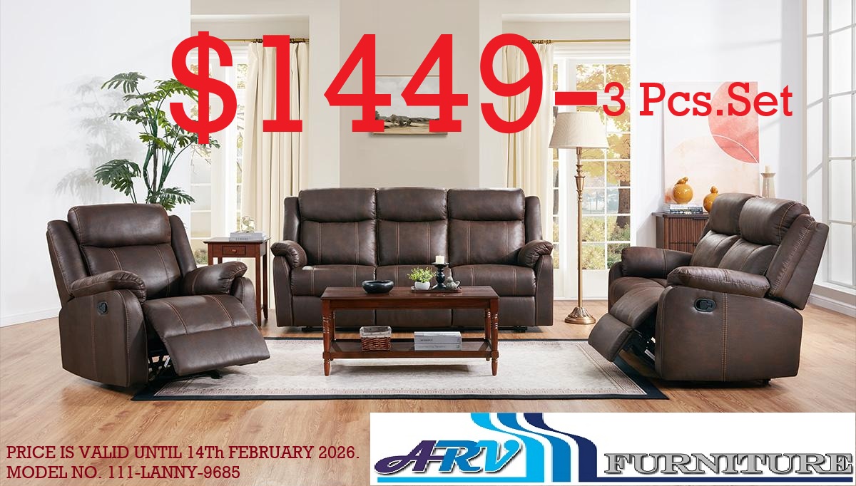 The price is for a Recliner Sofa, Loveseat & Chair. Color:- Brown. Add comfort and classic style to your living space with this high-quality Leathaire manual recliner sofa set. Features: High-quality Leathaire upholstery for a rich look and feel. Smooth manual reclining mechanism for easy, reliable operation. Chair with smooth glider motion for gentle rocking and relaxation, Plush padded seats, back, and armrests for enhanced comfort. Sturdy frame construction designed for long-lasting use. Elegant color that complements a variety of décor styles. Supportive seating ideal for lounging or everyday use.