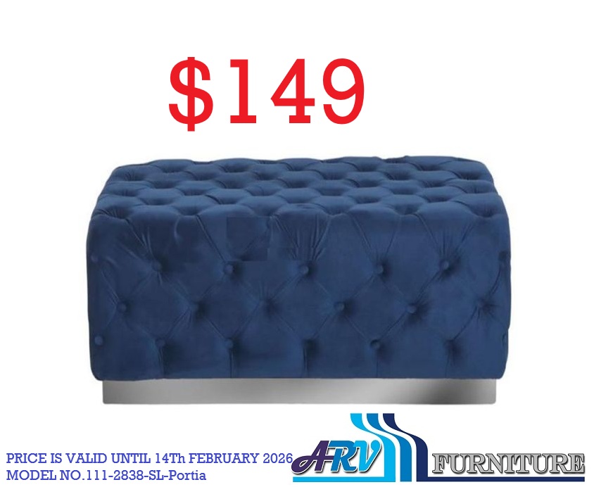 The price is for a Ottoman. Color:- Blue-Silver. Blue Color Ottoman. Featuring beautiful velvet upholstery ottoman from Kwality. Key Features: Beautifully upholstered in good quality velvet fabric and stainless steel chrome base Tufted style and button finish of the ottoman adds extra elegance. Silver frame adds a touch of sophistication Thick fabric padded seating ensures comfort.