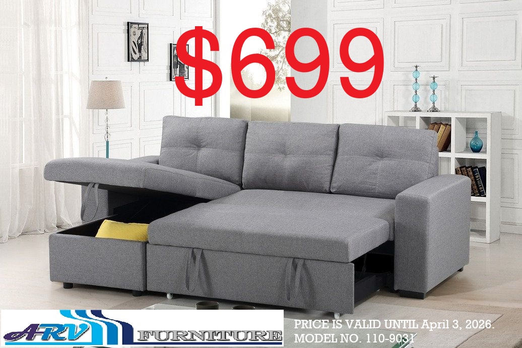 The price is for a Sofa Bed. Color:- Grey Sofabed Sectional With a Large Lift-up Storage Compartment. Reversible Left or Right-Hand Chaise. Grey Fabric. Material Fabric Dimensions 90”L 59”W 38”H