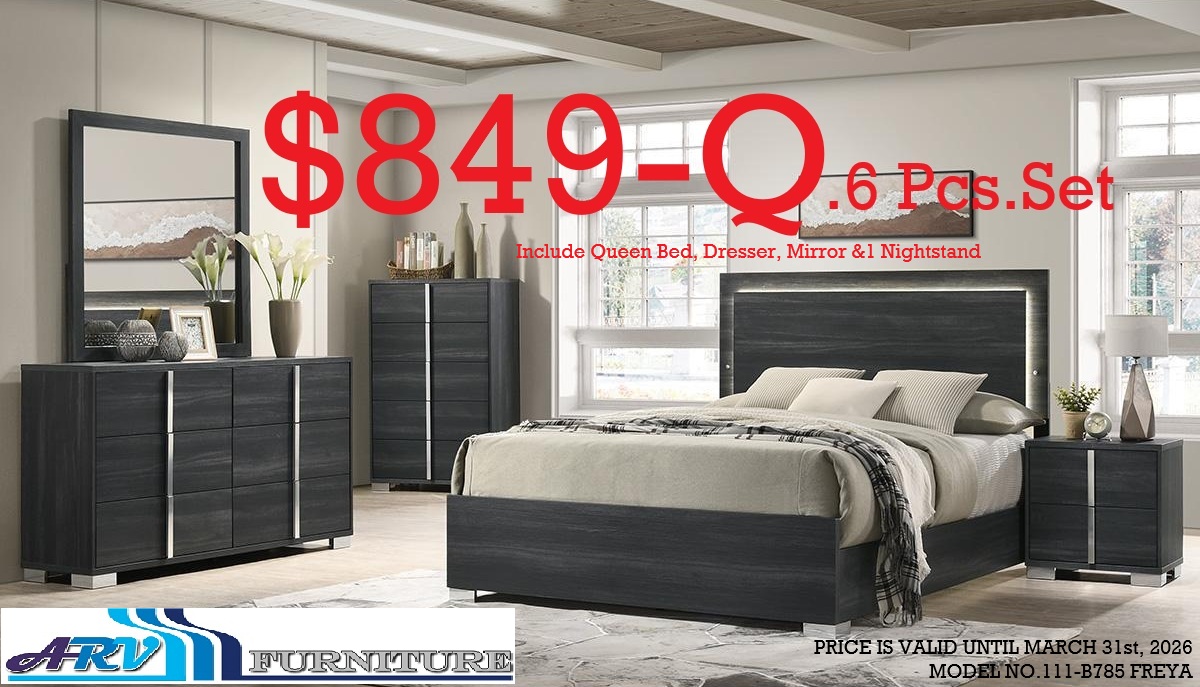 The price is for a Queen-Size Bed, Dresser, Mirror & 1 Night Table. 6PCS QUEEN SET. Color:- Grey. Key Features: Featuring grey finish with contemporary design and LED light on headboard, this quality bed will transform your bedroom with its practicality, attractiveness, and decorative furnishing. Box spring is required! The drawers of Chest, Dresser and Nightstand have smooth metal rails for easy opening or closing and also extend out to provide easy access to all of the things inside. Metal handles add grace to the beauty of this set. This bedroom set is made from quality material and is designed with a durable solid wood.