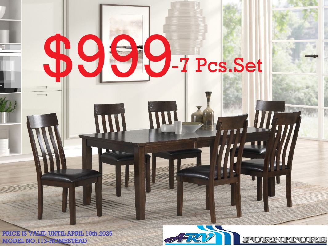 The price is for a Table, 4 Chairs & a Bench. 6 pcs. Dinette Set. Upgrade your dining space with this stylish and practical 6-piece solid wood dining set, finished in a modern grey tone. The set includes one dining table, four chairs, and one matching bench—designed to offer both comfort and flexibility for everyday dining. Features: Durable solid wood construction Modern grey finish Comfortable fabric-upholstered seating Bench offers versatile, space-saving seating All pieces conveniently packed in one box. Dimensions Table: W-48″ x H-30″ x D-36″ Chair: W-17″ x H-36″ x D-21″ Bench: W-38″ x H-19″ x D-15″