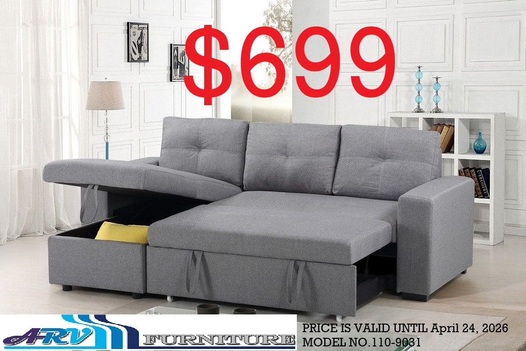 The price is for a Sofa Bed. Color:- Grey Sofabed Sectional With a Large Lift-up Storage Compartment. Reversible Left or Right-Hand Chaise. Grey Fabric. Dimensions Sofabed Sectional 90”L 59”W 38”H