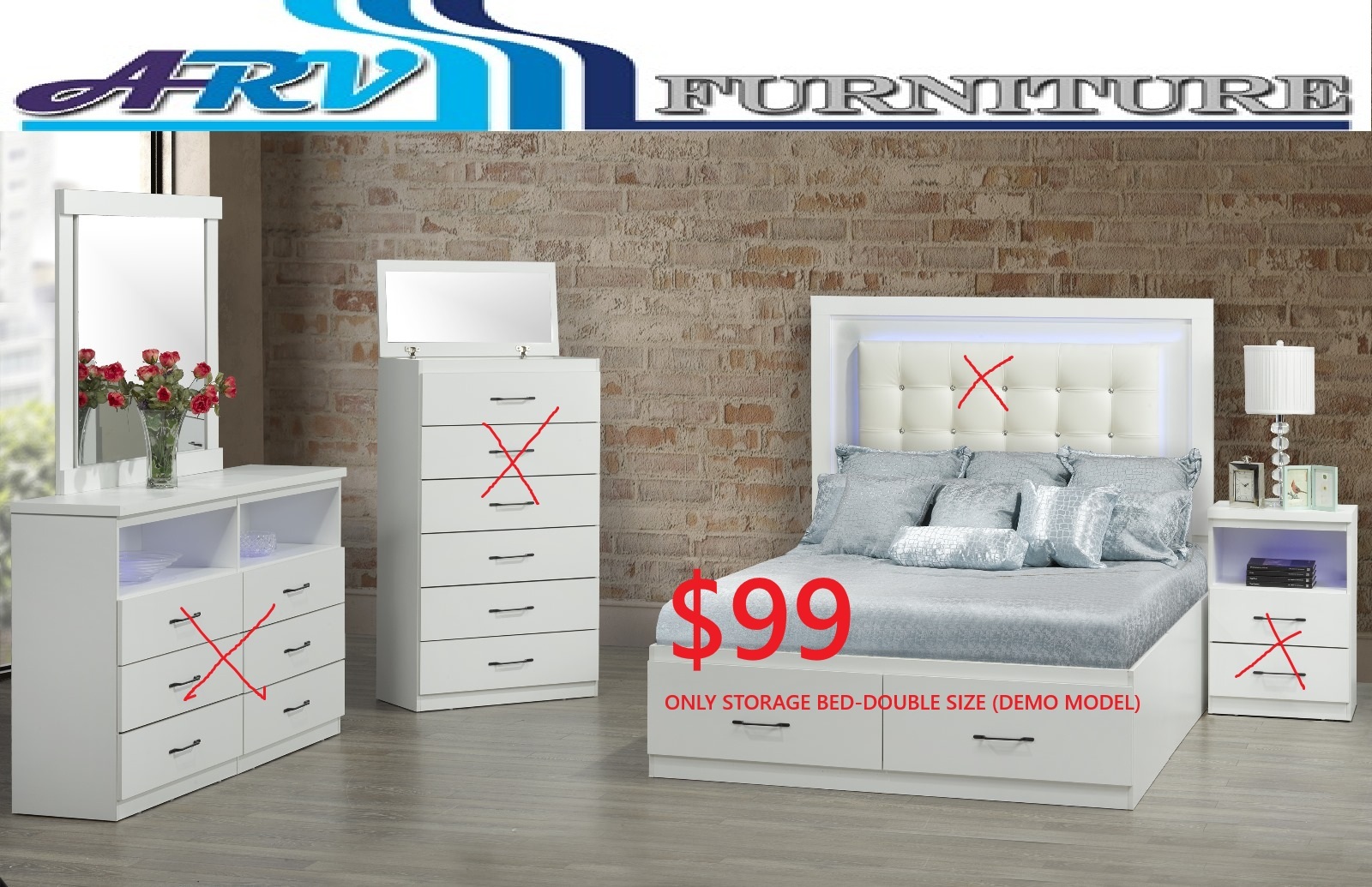 The Price of $99 is for a Storage Platform Bed (without) Headboard Only.