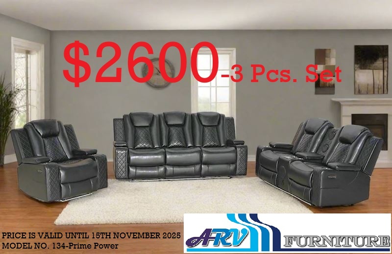 MODEL NO. 134-Prime Power The price is for a Recliner Sofa, Loveseat & a Chair Can buy individual pieces. Sofa 50% Love seat 40% Chair 25% Make the living room comfortable with this black power recliner sofa set with speakers and phone chargers. Key Features: The recliner sofa seat has a strong base. Adjustable head rest. The armrest has storage. Led light and USB outlet. Drop down tray and reading light. Dimensions Sofa 84″ 38″ 40″ Love Seat 73″ 38″ 40″ Chair 38″ 38″ 40″
